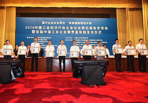 7月26日,“2014中国工业经济行业企业社会责任报告发布会暨首届中国工业企业履责星级榜发布仪式”在北京人民大会堂召开。会上,国机集团获评“中国工业行业履行社会责任五星级企业”,并发布了2013年社会责任报告。